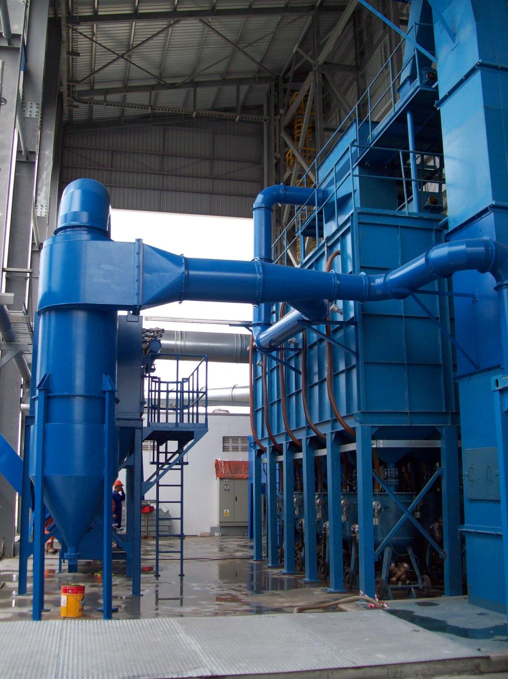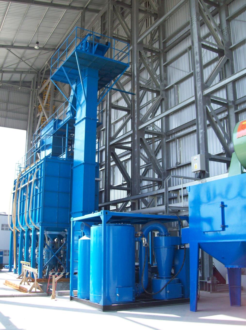 磨料運(yùn)送方式是該設(shè)備設(shè)計的另一亮點。除了眾所周知的需要很小安裝深度的扁平式傳送地面以外,在螺旋傳送機(jī)和振動橫格磨料傳送技術(shù)等方面具有極其豐富的經(jīng)驗。對于大型工件一般采用開放式噴砂。